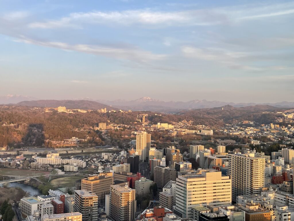 仙台駅からタクシーに乗っても1メータの立地、後ろに東北大学、その後ろには青葉山や太白山を望む素晴らしい景色を楽しめます。