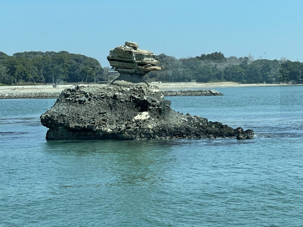 仁王島(におうじま)、仁王様がにらみを利かせてる…様に見えなくもないか。波の侵食で削られて、首の所はコンクリートで補修してあります。大小それぞれの名前の由来や役割など、船内の説明アナウンスを聞きながら50分満喫して下船しました。