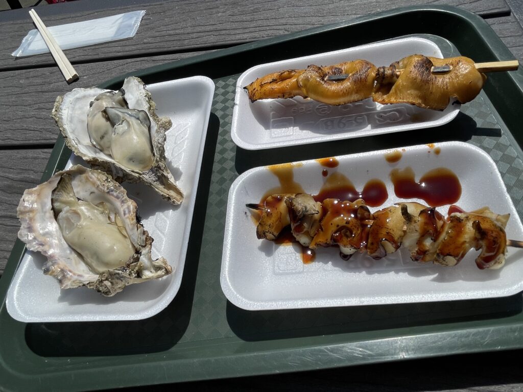 焼き牡蠣やホヤの串焼き、つぶ貝の串焼き😘これ以降、沢山もお代わりしました。