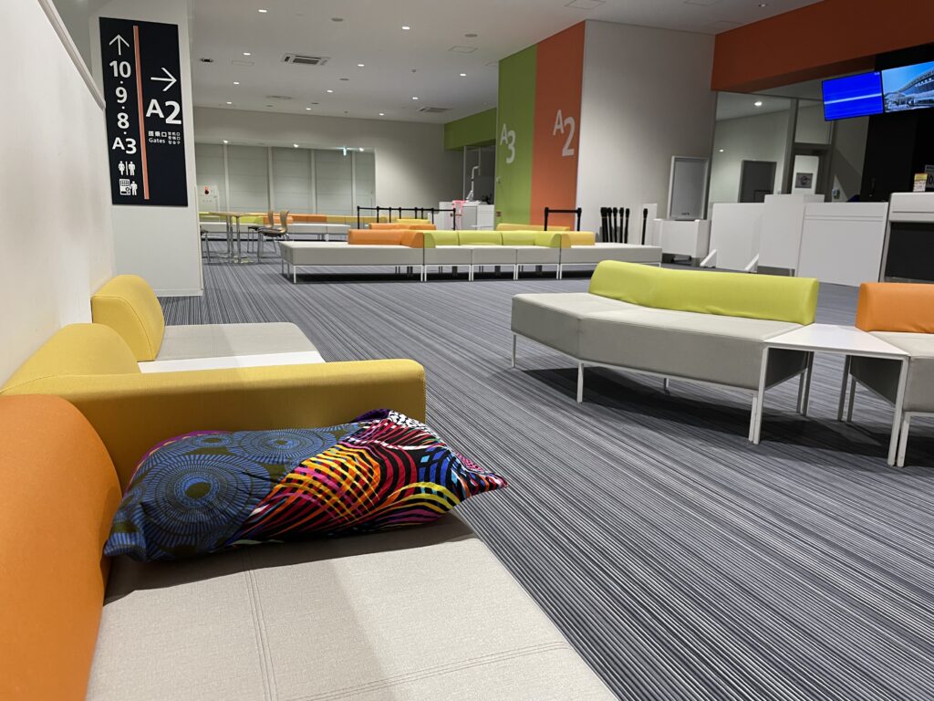 搭乗案内までの45分の待ち時間を、ここで寝そべってお尻を休ませる事が出来ました。見つけて来てくれた夫殿、神✨