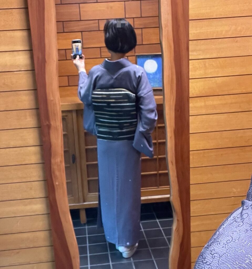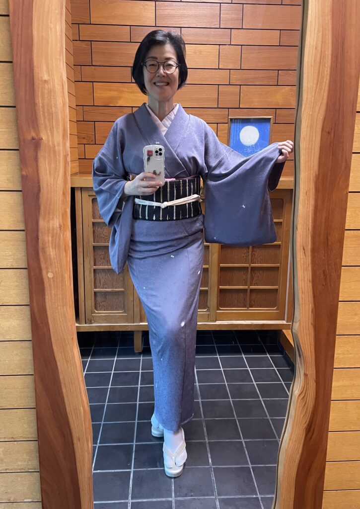 朝6時半、着付けていても暑いですが、今日は「四季の釜」のお手伝いなので単衣です。