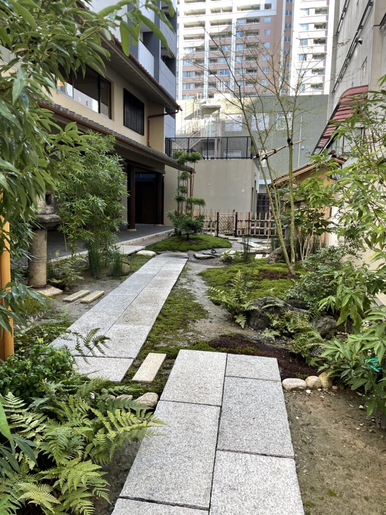 庭の先のビルですが、この中に幾つものお茶室があります。今日はここで季節のお茶会「四季の釜」を師匠の早智先生が席主で開催です。