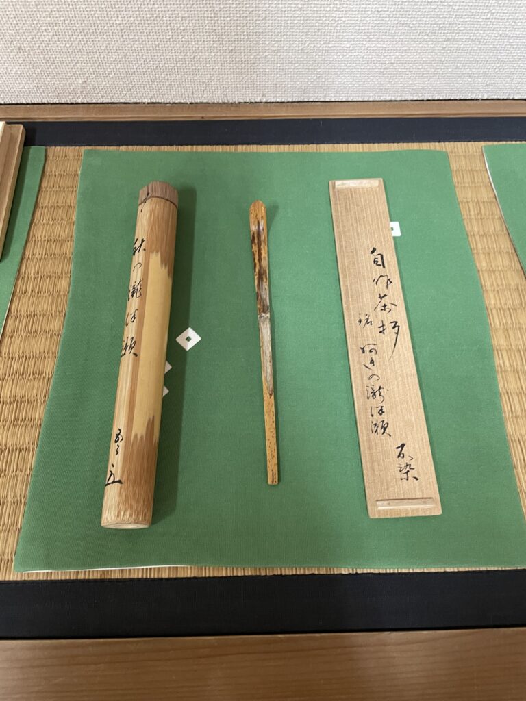 寄り付きには会記と共に素晴らしい茶道具が並びます。今日一番惹きつけられたのは茶杓。