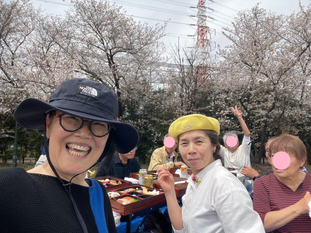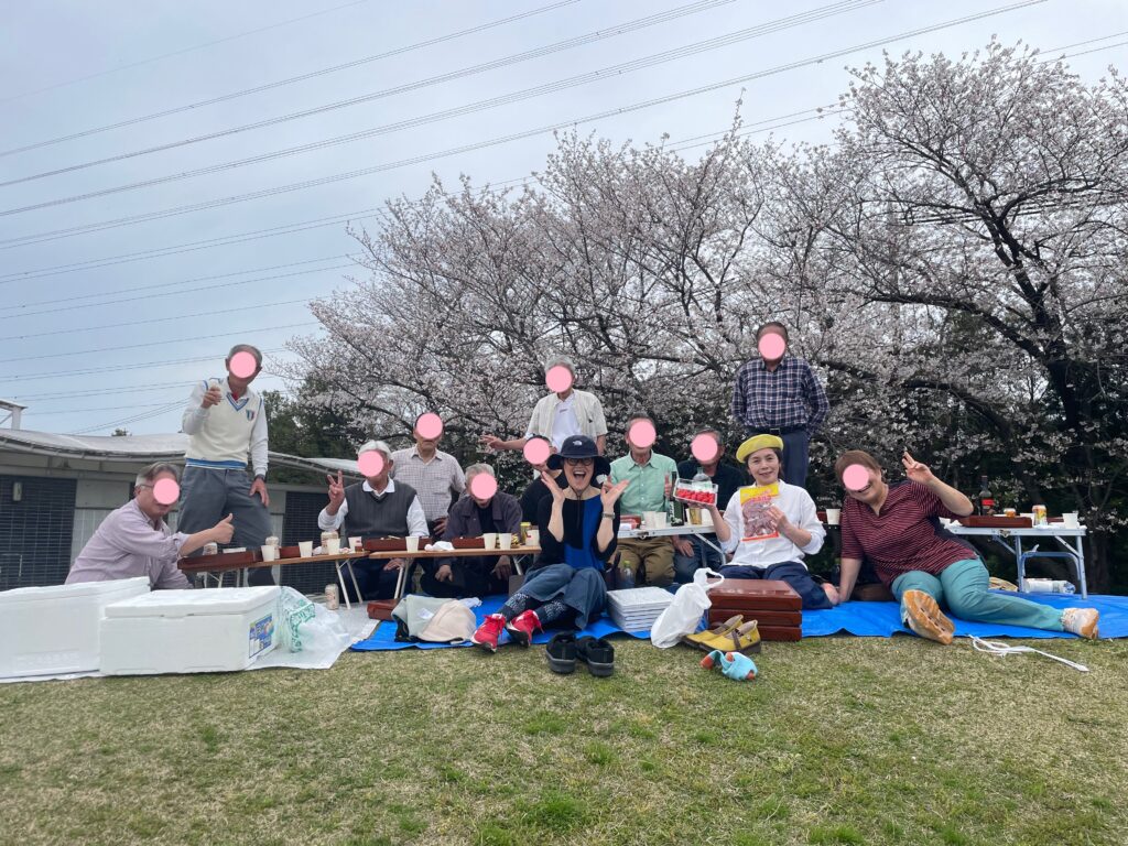 まだ咲き誇っていた桜の前に陣取って、おっちゃんおばちゃんで懇親会です🤗🤗🤗
