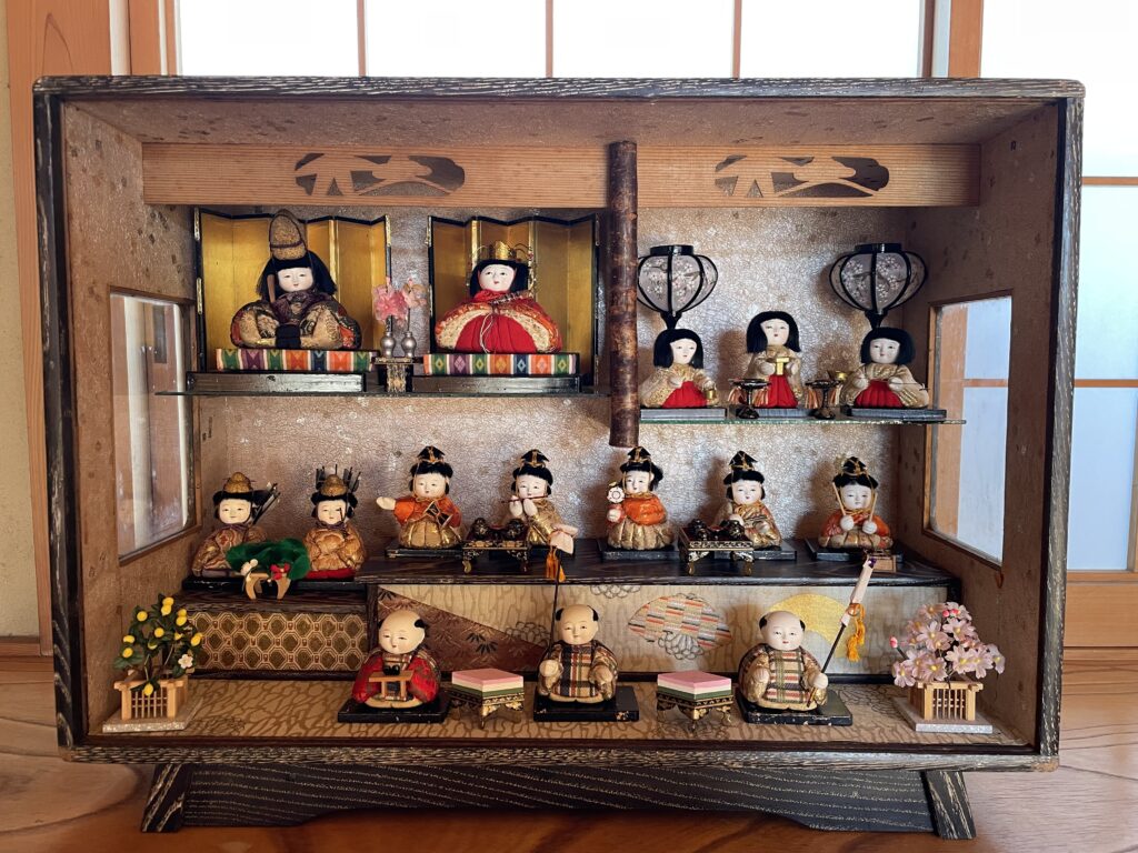 今日やっっっっとお雛様を出しました。重いものを動かす、持ち上げるのはお尻に負担大なのでなかなか出来なかったのですが、立春で出す予定が伸びましたが何とか出来ました。我が家の還暦雛、推定66歳(祖父母が姉の誕生に買ってくれた物)。杉や桜が使われていて、品の良い大好きなお雛様です。
