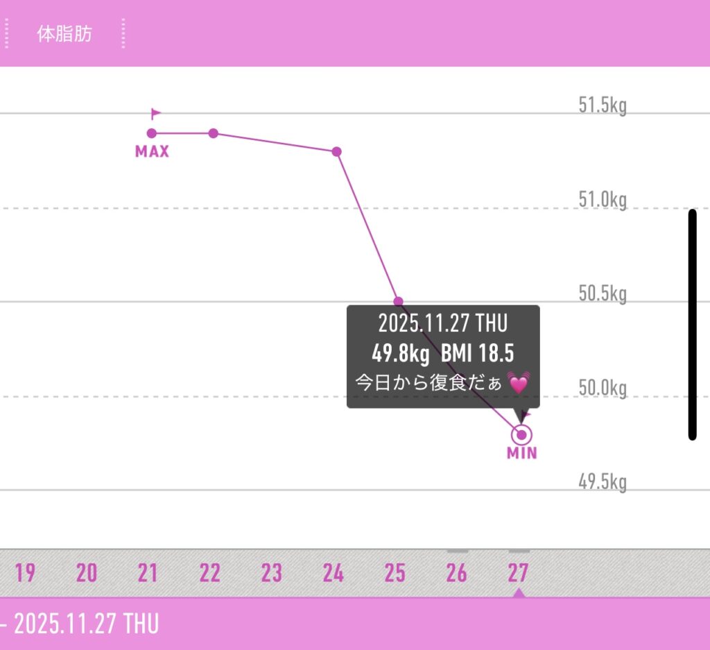 ➖1.7kg、久しぶりの40Kg台です。