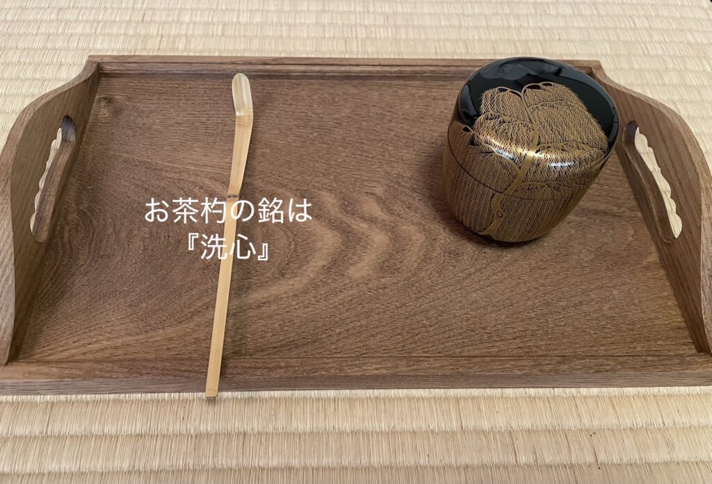 最後に拝見に出た棗(なつめ)の茶杓。特に茶杓にはその時の“心を映す銘”をつけるもの。今日の銘は、4月に気持ちを新たにと言う意味を込めて『洗心』でした。良い銘なので、席主の時子先生に了解とって1枚パチリ!