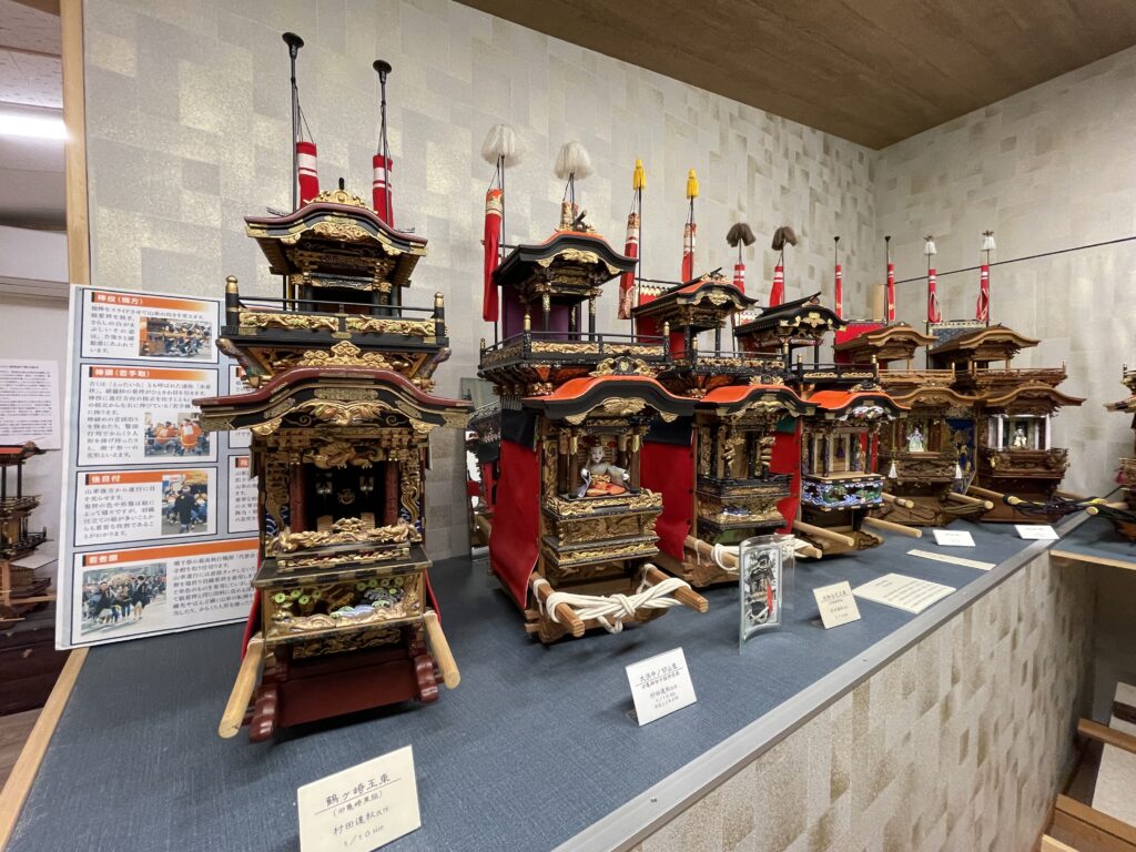 本館には常設の地元作家の作品や、迫力ある立川流彫刻の展示があり、その先に進むと本物の山車に乗ってみる事ができます。実際にハシゴでよじ登り、目の前の映像でお祭りの最中に山車に乗っている様な体験が出来て感動します🤗