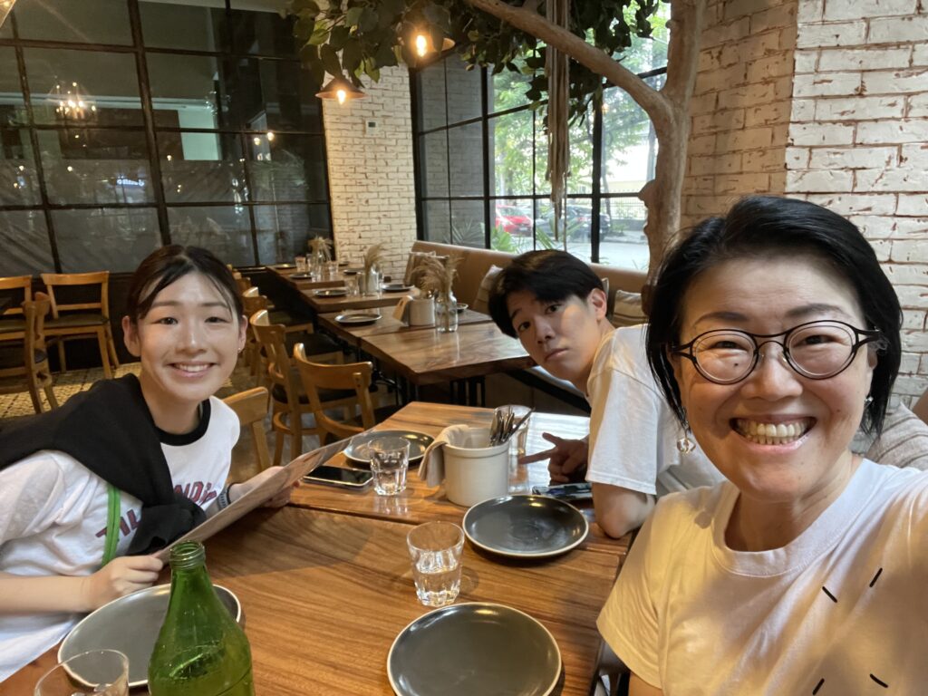 少し歩きながら、通りの高級ショッピングモールをぶらぶらしながら何も買わずに通り抜け(笑)、長女の予約のレストランに来ました。