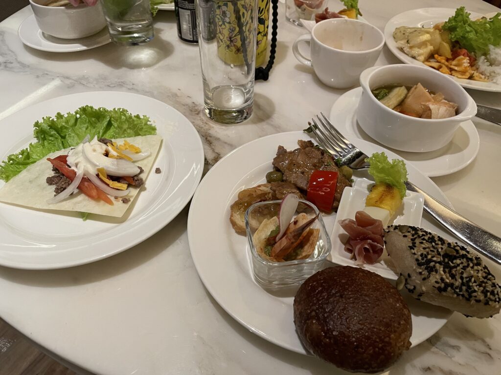 この後はスーパーマーケットに寄ってお土産を買い、ホテルに戻ってラウンジで軽食(いやいや、かなりガッツリやん❗️笑)を頂き、