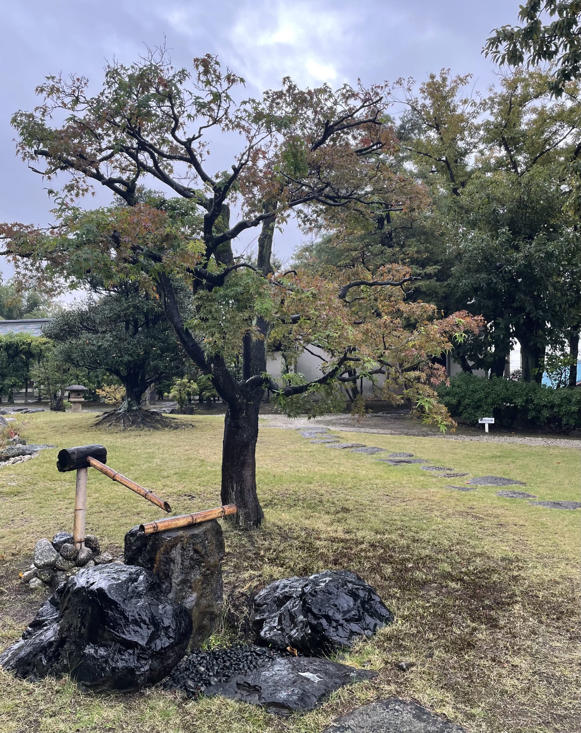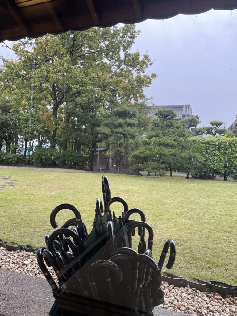 寄付から傘をさして本席に向かいます。