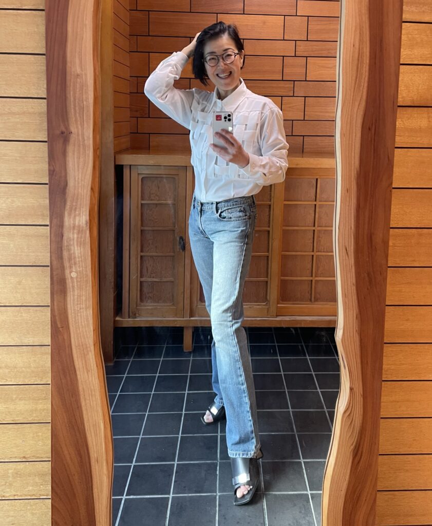毎回のナルシスト写真はGパン、20年経っても現役で活躍中のRalph Laurenです。そう言えば、30代の目標が「白シャツとGパンの似合うババァ」だったけど、似合ってるかどうか知らんけど、成り切ったらOKっすね(笑)