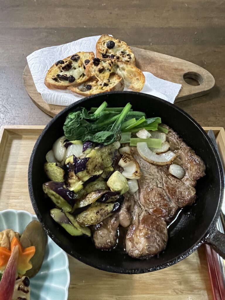 いやいや今年はスケジュールに書いておいたので、晩ご飯はご馳走を用意する予定でした。朝から出かけていたので、帰りに買い物に寄って焼いただけのディナーですが、愛は溢れてるっしょ💓